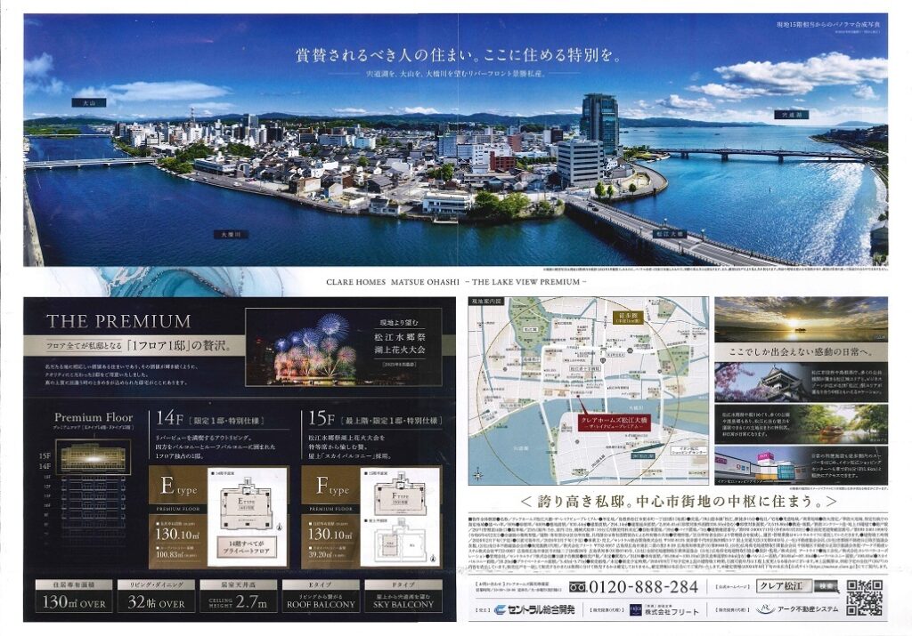 本日、平然と、問題になった大橋川沿いマンションのの新聞折り込み広告が入っていました。景観審議会が、「周辺に合わせて低くして欲しい」と答申を出したにもかかわらず、14階15階の宣伝をしています。最上階が目玉なのです。